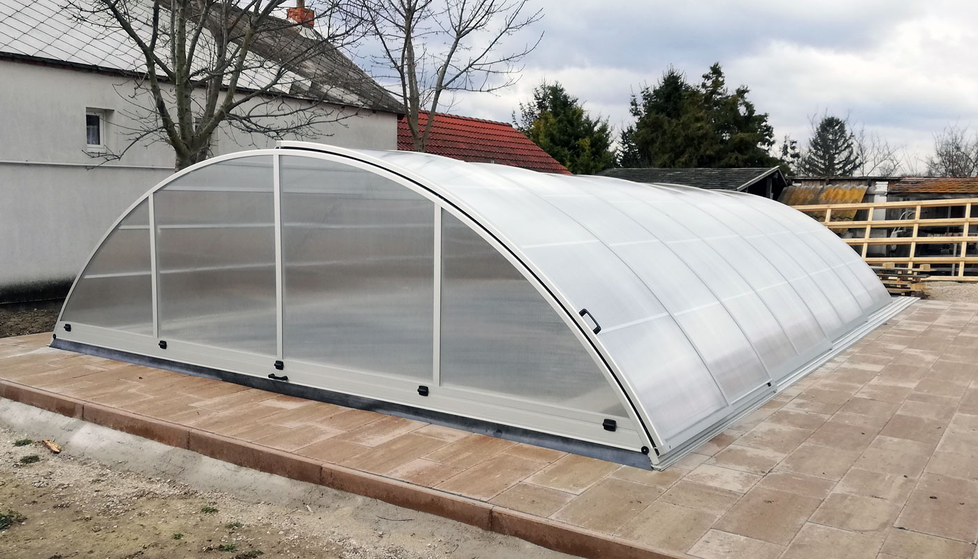 Mit stilvollen und ästhetischen Rundungen versehen, bietet diese Überdachung nicht nur ein ansprechendes Design, sondern auch praktischen Schutz für Ihre Kinder. Zudem verleiht sie Ihrem Pool eine besondere Note.